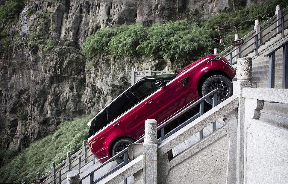 湖南张家界天门山因自然奇观天门洞而举世闻名,若想抵达这世界最高海拔的天然穿山溶洞,须沿999级台阶拾级而上跨过最大角度达45度的天梯,登顶天门洞连人都吃力,但前不久一辆自重近2.5吨的路虎揽胜运动版却完成了这一挑战,向世人证明自己百年豪华越野品牌的实力。