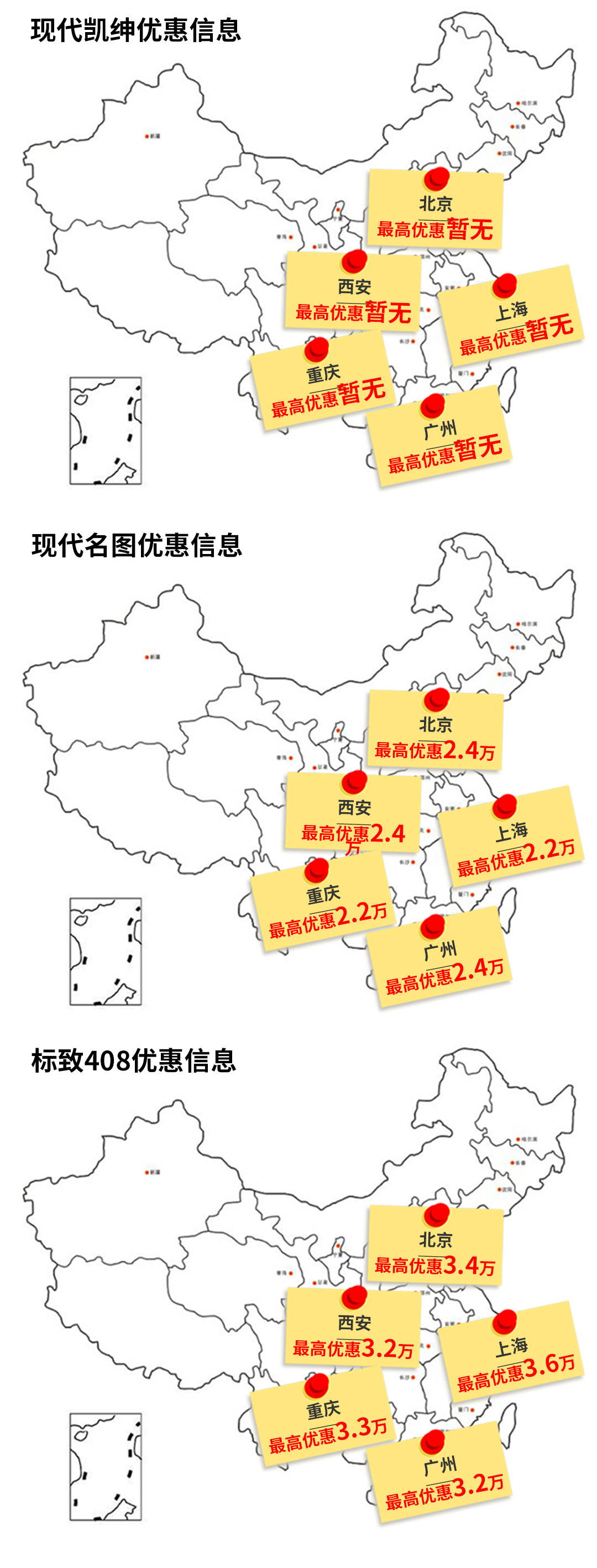 在优惠方面,凯绅目前在价格方面较为稳定,优惠方案还没出台,但教授相信,再等上数月,将会有相当不错的优惠幅度,当然你也可以考虑依然同堂在售的经典款K4,也有一个相当不错的优惠幅度;而对于现代名图和标致408,优惠也是大得惊人,数万的优惠也让它们性价比十足。