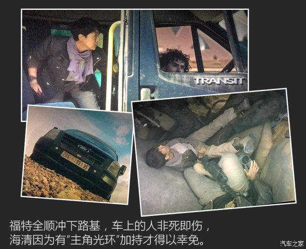 作为一个工作狂,“不死鸟”海清混入了一个当地的撤离车队,而他们乘坐的是一台福特全顺,然而由于某种不能剧透的原因,这台全顺失控翻车,除了“不死鸟”女士,车上的其他乘客非死即伤,这件事告诉我们,不管坐什么车,不管坐哪个座位,都要系好安全带。