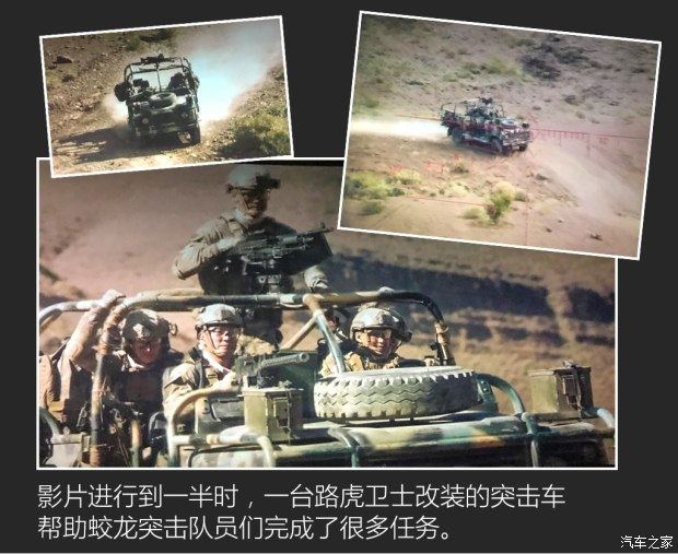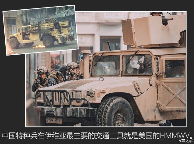 连轻武器都这样,车辆自然也都是当地政府军的了。在影片中,蛟龙突击队员们乘坐的都是美国的HMMWV(及其衍生车型)。HMMWV俗称悍马军车,早在设计之初它就被定位为一台高机动性作战平台,因此具有多个版本,而片中中国特种兵们驾驶的就有普通版、软顶版以及皮卡运兵版。