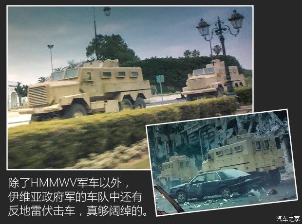 影片开始后不久,蛟龙突击队奉命深入伊维亚内陆营救中国侨民和外交官,他们的车队中除了悍马军车以外,还有几部高大的装甲军车,这些车的学名叫反地雷伏击车(MRAP)。