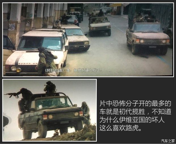 说完了好人再说坏人,武装分子干坏事的时候总是开着一些皮卡,而在影片中出现最多的并不是我们熟悉的丰田,而是路虎,确切地说是在第一代路虎揽胜基础上改装的武装皮卡。第一代揽胜虽然说开创了一个豪华SUV的细分市场,但比起如今的产品还是相当粗犷的,武装分子用它倒也算说得过去。