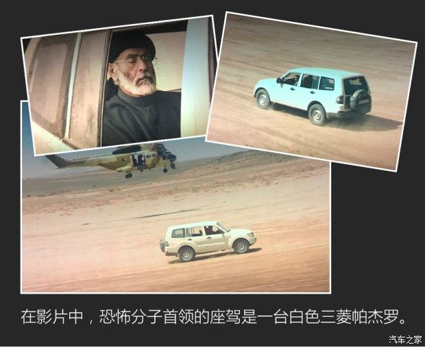 恐怖分子开武装皮卡,而恐怖分子的首领坐的则是一台白色三菱帕杰罗。和兰德酷路泽一样,帕杰罗也是一款日系经典越野车。首领选择的是最新一代车型,优异的通过性兼顾舒适性让它成为了首领居家旅行、杀人灭口的必备座驾。