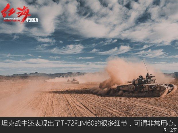 《红海行动》投资巨大,光武器装备的投资就达到了2亿元。这么多钱怎么花呢?于是影片最后“不可避免”地出现了坦克大战,而且,参演坦克终于不是“五对负重轮”了(五对负重轮的梗说来话长,有兴趣的可以自行百度),而是俄式T-72和美式M60,虽然不是最新装备,但也足显导演的诚意。