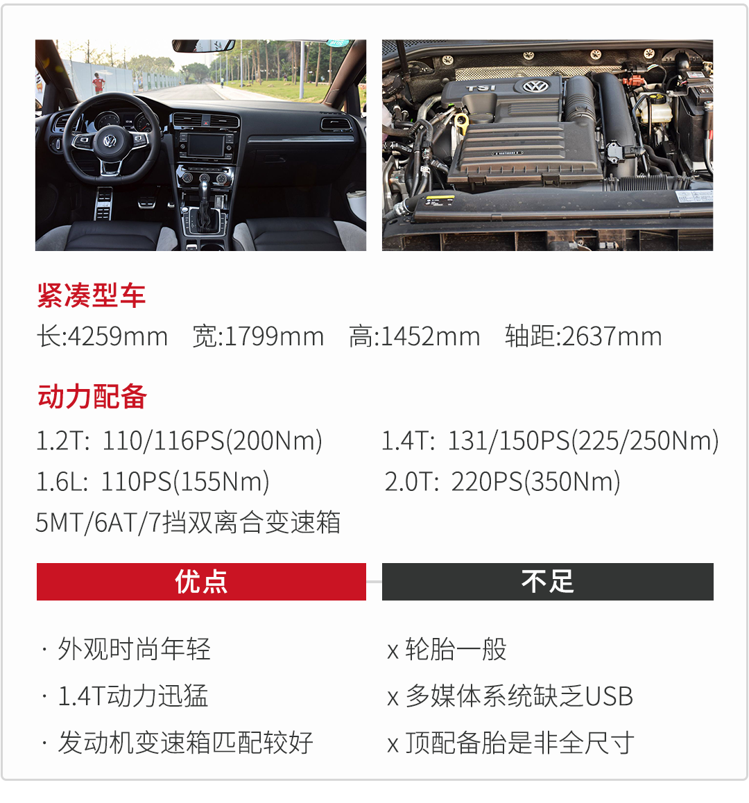 高尔夫这台车可以说是大众中操控性最好的,普通的1.4T+7挡双离合能取得9.35秒的零百成绩,咋一看确实颇为普通,但是实际开起来还是颇有爽快感的。拿这台车去跑高速,才是尽显实力的地方,大脚油门下去,动力来得颇为迅猛。