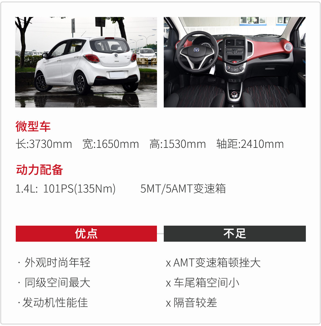 长安奔奔全系标配1.4L发动机,而自动挡车型则是使用AMT。虽然说AMT拥有科技感较强的“旋钮换挡”,不过对于年轻人来说还是手动挡更有驾驶乐趣。手动天窗版和手动尊贵版两者均有前后倒车雷达和中控大屏,前者则多了一个全景天窗,价格也贵了3000元。如果对于天窗没有需求的朋友可以选择手动尊贵版,价格也只需要4.89万元。加上现在普遍有5000元左右的优惠,综合来说只需四万元出头就有一台中控大屏、前后驻车雷达、大马力和大空间的微型车,关键是品质能媲美合资品牌,还是很值得推荐的。