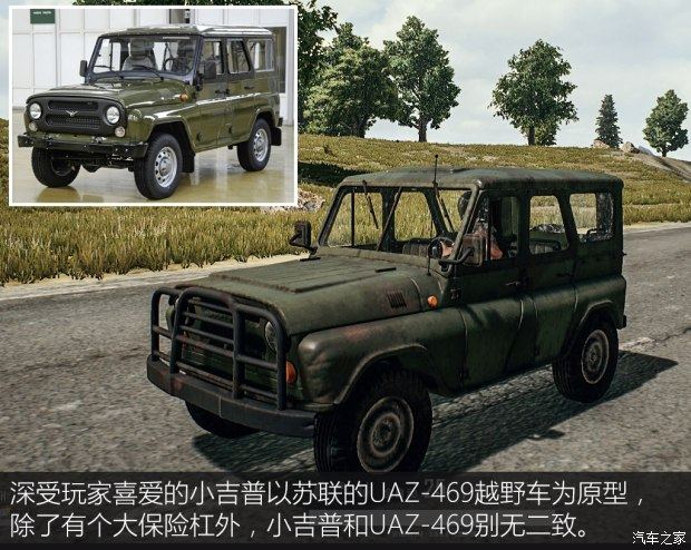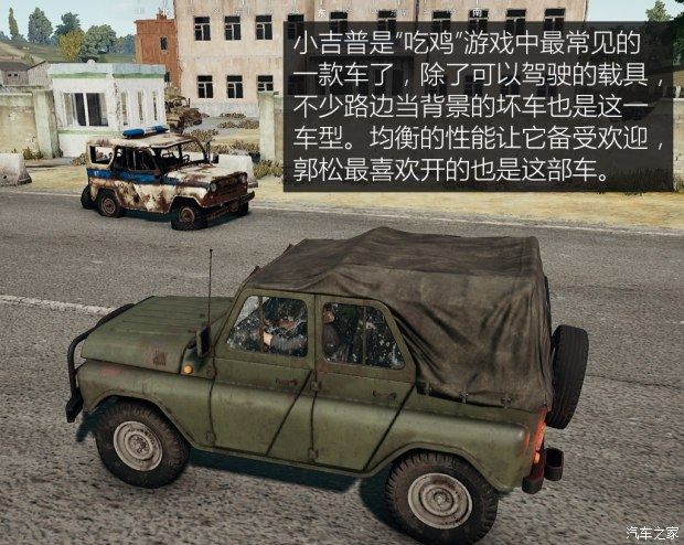 郭松“吃鸡”时最喜欢的车是那个绿色小吉普,这部车有三个版本,分别是敞篷、帆布顶和金属顶(俗称铁顶),其中铁顶是郭小松最喜欢的,因为比较抗打。另外,不管是哪种版本,小吉普的性能完全一致,非凡的通过能力让它可以带着郭松上山下河,不错过各种地形的每一处房屋。另外,它的极速也能开到100km/h左右,缺点是噪音大,且比较费油。