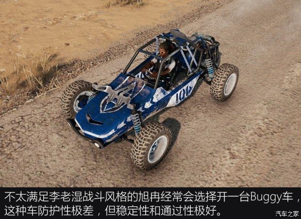 玩过这游戏的人肯定都知道,Buggy车除了驾驶席之外,只有一个极风骚的后座,没有人爱坐,因此旭冉就可以用“不能把鸡蛋放在同一个篮子里”为借口独自驾驶一台车。而后他就会渐渐地,离我们越来越远,在远处独狼似地跟别人杀个痛快,然而对团队的贡献几乎可以忽略不计。
