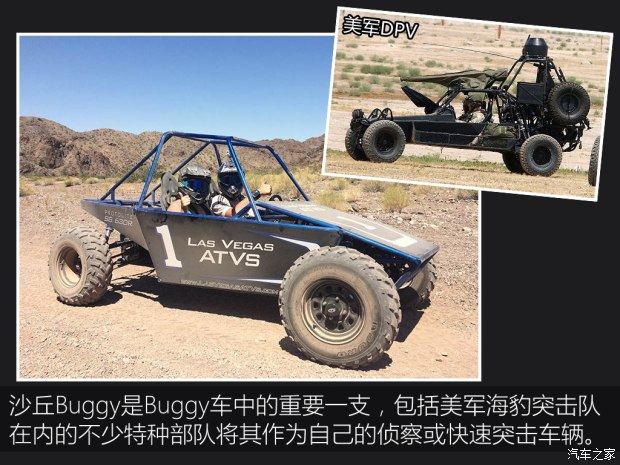 沙丘Buggy是Buggy车中的典型代表,这种车是美国人发明的,起初就是把将要报废的汽车拆除外壳、装上大尺寸越野轮胎制成的大玩具,后来这种车逐渐发扬光大,由于出色的机动性和越野能力,不少军队也装备了这种车,比如美军的Desert Patrol Vehicle(DPV),它和游戏里的Buggy车非常接近。