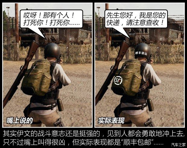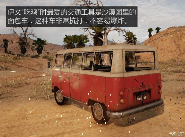 佛系伊文在游戏里最喜欢的车是沙漠图里的面包车,这种车跑不快,越野能力也不行,但有一个好处,就是特别抗打,一般车用AKM三四十枪就打爆了,面包车却要打七八十下才行。另外,可能是巧合吧,这种身量不大的面包车和伊文“吃鸡快递员”的身份也非常吻合。