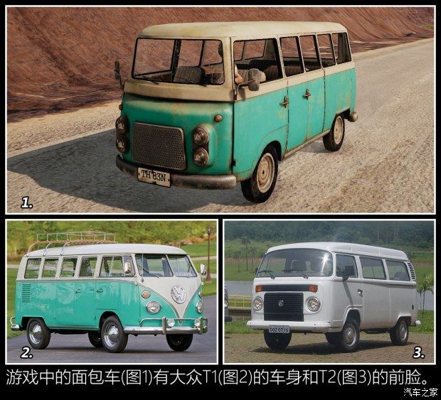 顺便提一句,大众T1和T2两款车我都开过,这两种上世纪五六十年代设计的车并没有考虑太多安全性,前排乘客的腿和车外只隔一层薄薄的钢板和一层更薄的内饰板,因此像游戏里那么抗打,可能不太现实。