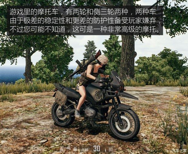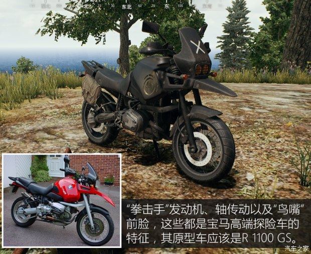 仔细看不难发现,这台摩托车采用的是水平对置“拳击手”发动机加轴传动,而这是宝马摩托从诞生至今传承了近百年的传统和骄傲。从经典的鸟嘴造型和不俗的越野能力可以看出,这是一台宝马探险摩托车(ADVENTURE)。如今宝马最新的“拳击手”发动机探险车R 1200 GS在国内的售价是19.9-26.9万元。不过根据车身细节来看,《绝地求生》中的摩托车应该是90年代的R 1100 GS或R 1150 GS,即便如此,应该也是这个游戏里最新最高端的车型了。