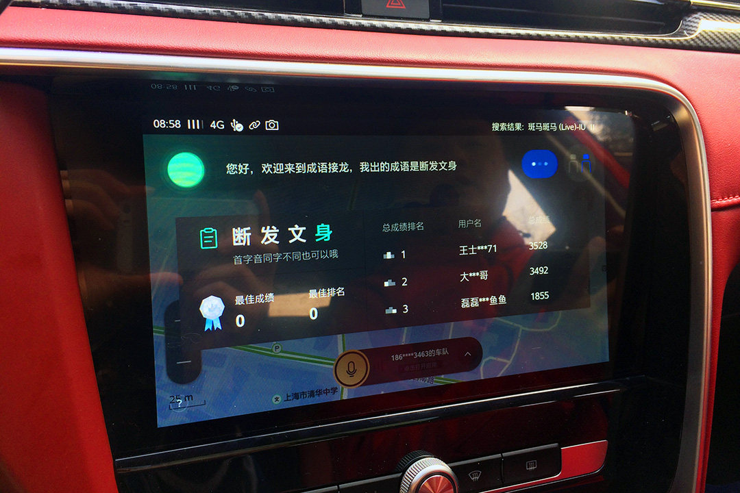 在教授印象当中,自驾游途中找点乐子无非是不断循环的音乐或者听电台。但在全新名爵6上,可不会有一分钟觉得闷。随便说个歌名,斑马便自动识别,并下载歌曲播放,各种有声读物也是解闷好选择。车上自带的“成语接龙”和“猜歌名”游戏,可让副驾哥们玩得乐此不彼。