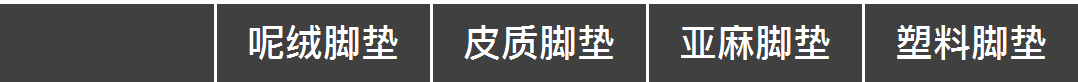 皮质脚垫、塑料脚垫、亚麻脚垫和呢绒脚垫