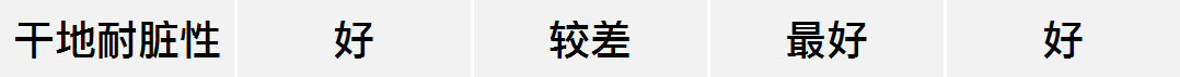 针对耐用性、耐脏性、视觉效果、清洗难度等方面