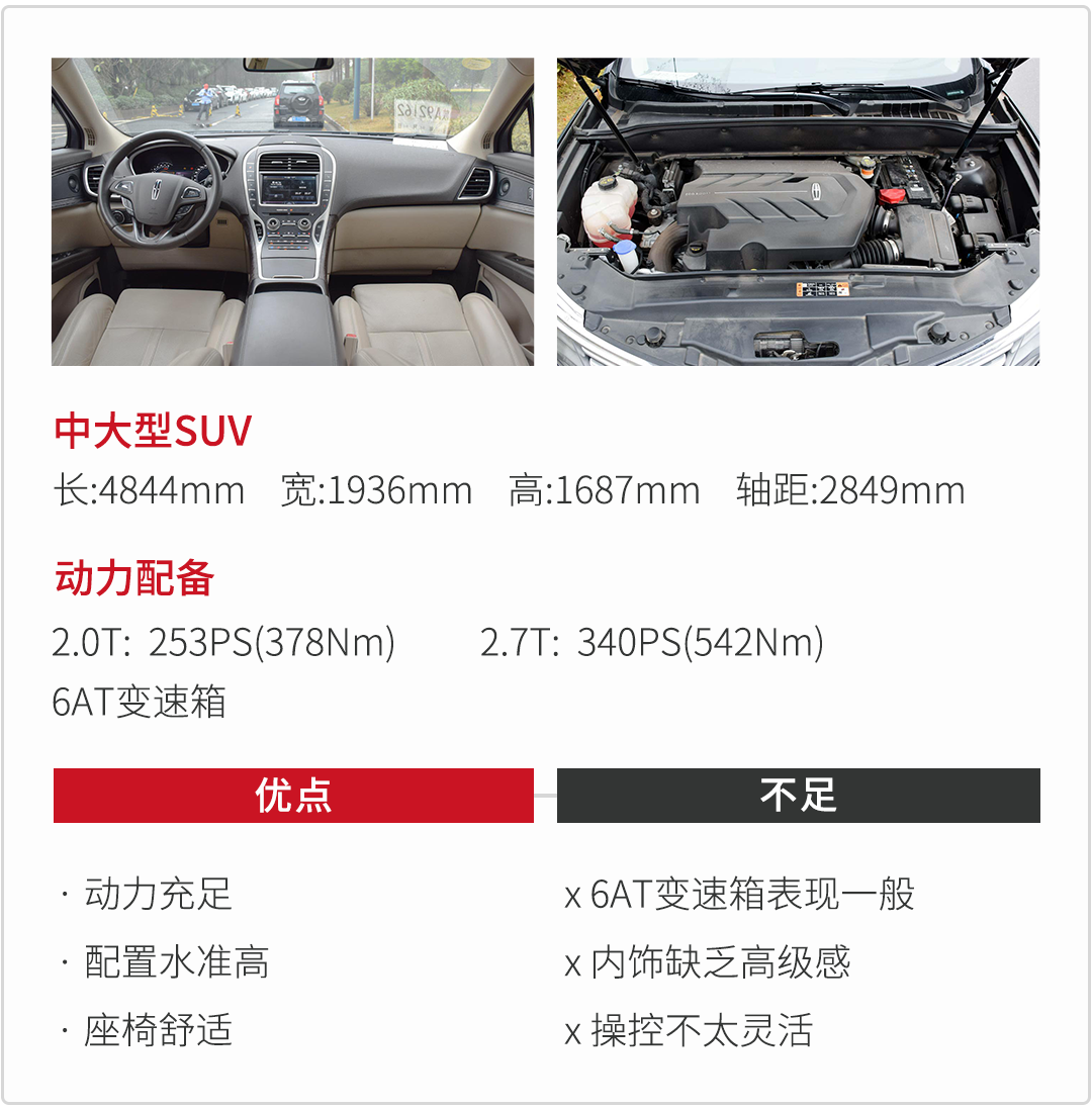 这时候恐怕对很多车都无感了,最重要还得是舒适。既然说到舒适,那就不得不提林肯MKX。作为一款中大型SUV,MKX的座椅舒适性在同级中绝对是数得上号的。整体造型宽厚,填充物料厚实且柔软,两翼对身体的支撑颇为到位。