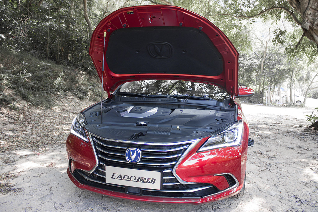 手动挺杆被安放至发动机护板的凹槽内,很是贴心。引擎机盖内侧配备隔热棉,对静音具备一定积极作用。长安对细节优化的执念,是可感知的。