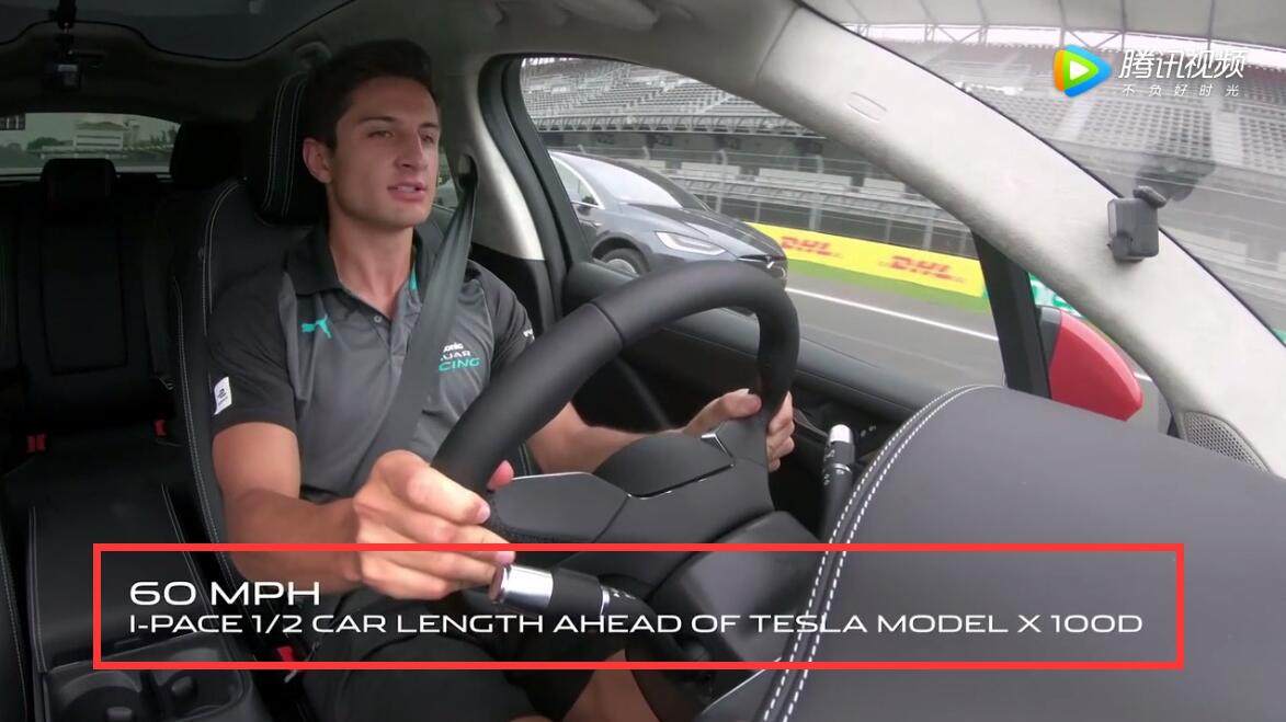 为了体现捷豹I-PACE在直线加速和制动力方面的优势,官方出品了捷豹I-PACE对比特斯拉Model X的加速视频,从视频中可看到,0-96km/h的加速,捷豹I-PACE分别以半个车身以上的车距分别赢了Model X 75d和Model X 100d。