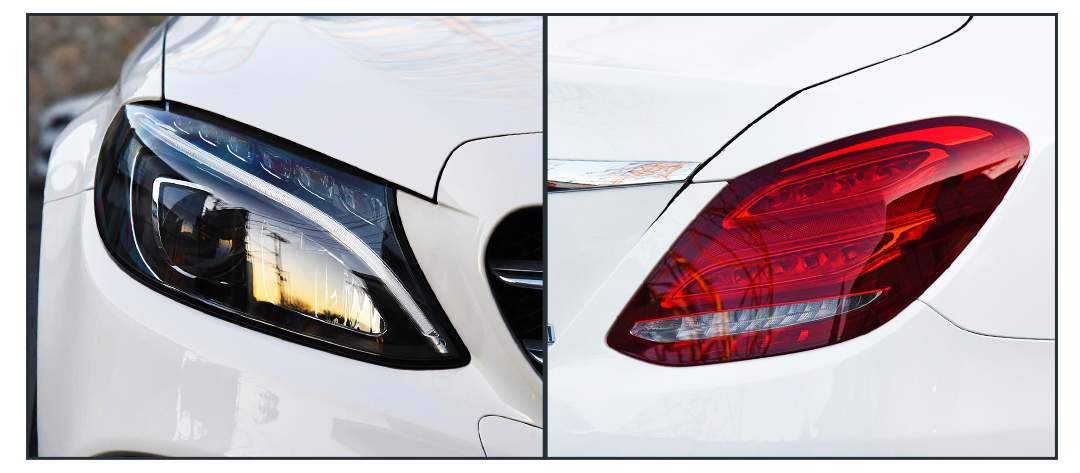 C级最低配也配备LED大灯和LED日行灯,视觉效果不用担心,并且配备自动大灯,尾灯也是LED的,教授觉得C级的灯比A4L好看一点。