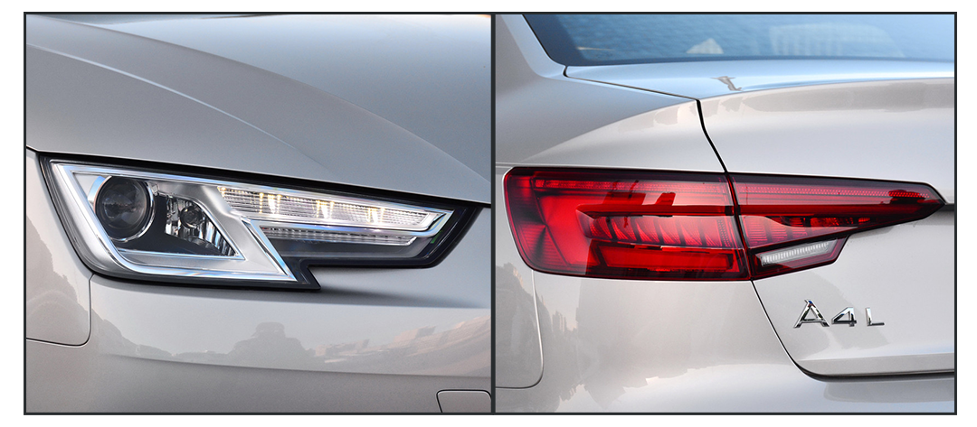 最低配的30TFSI的大灯配备的是氙气大灯,不过带有透镜,在加上全系标配LED日行灯,造型锐利,毕竟是灯厂,即使是最低配,气势也不能输,还有LED的尾灯。