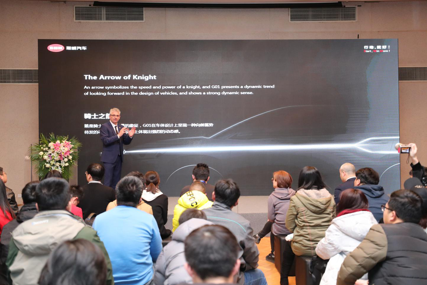 沟通会上,曾为丰田欧洲首席设计师、奥迪首席外观设计师的SWM斯威汽车欧洲造型设计中心设计总监科沃斯详细解读了代表SWM斯威G01设计DNA精髓的“骑士之箭”、“骑士之盾”、“骑士之智”、“骑士之风”、“骑士之质”、“骑士之奢”、“骑士之车”、“骑士荣耀”八大核心关键词,传达出“骑士之魂”的核心设计理念。