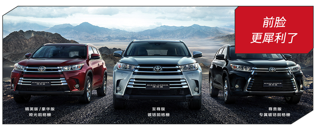 而前脸设计部分,汉兰达对各车型做了一下区分。精英版/豪华版采用的是哑光前格栅;至尊版采用的是镀铬前格栅;尊贵版采用的是专属镀铬前格栅,区别更强烈。之后在路上看到新款汉兰达就可以轻易地知道它是低中高配了。