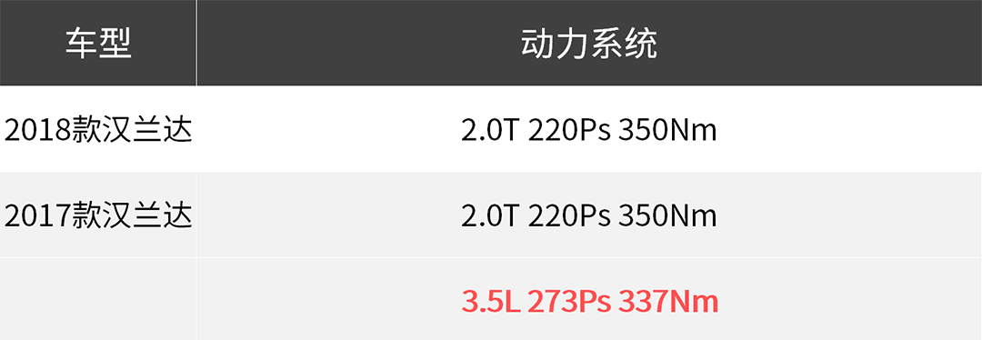 不知道大家有没有发现,比起上一款,2018款汉兰达可选的车型变少了,那主要是因为新车取消了3.5L车型。剩下的全是2.0T车型,动力数据还是熟悉的最大马力220匹、最大扭矩350牛米,依旧搭配6AT变速箱。虽然这次改款,动力并没有带来惊喜,但这套成熟的动力组合,还是很能让人放心的。