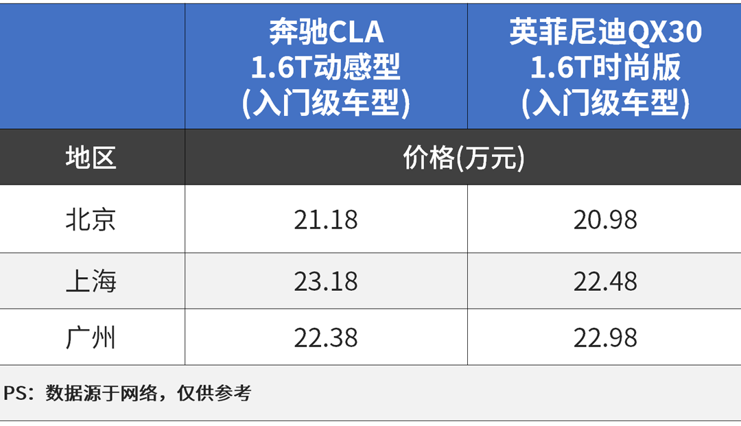尽管英菲尼迪QX30的官方售价要更加便宜,可是在终端售价的优惠力度方面,奔驰GLA能有更大的优惠,它仅仅比英菲尼迪QX30贵那么一丢丢,而且后期保养的费用会更便宜些。加上品牌、车型设计方面都能彰显出更高的档次,这样一来...请说出你不选奔驰GLA的理由。