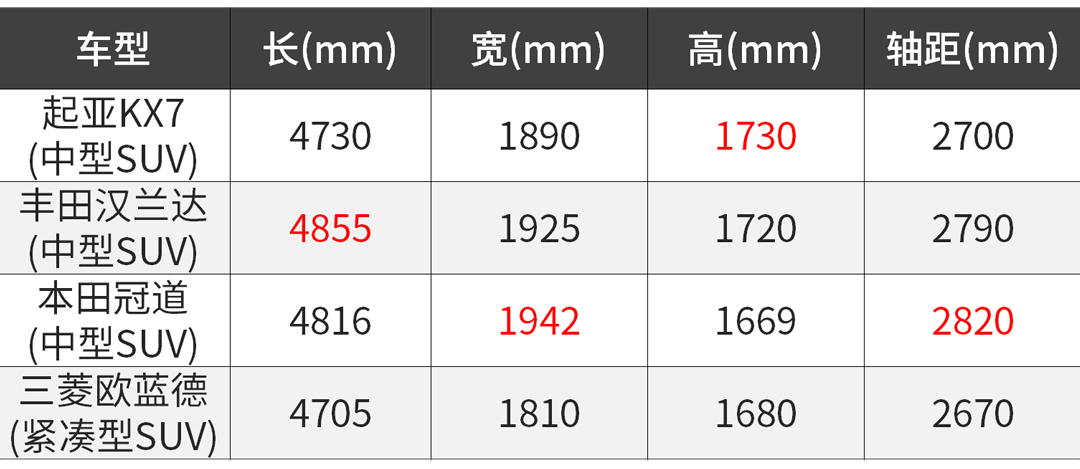 虽然起亚KX7定位是中型SUV,但从尺寸方面来讲,它的体型比不上一些主流的中型SUV,只能说它是介乎于中型SUV与紧凑型SUV之间。同时也可以说明,起亚KX7在空间方面的表现要比同级别车型略微逊色。
