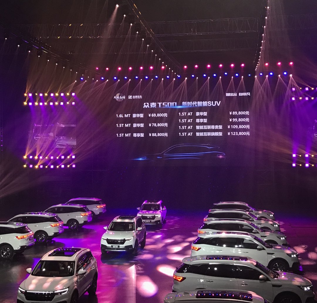 3月7日,众泰旗下的紧凑型SUV众泰T500 在杭州黄龙体育馆正式上市,售价6.98-12.38万元。