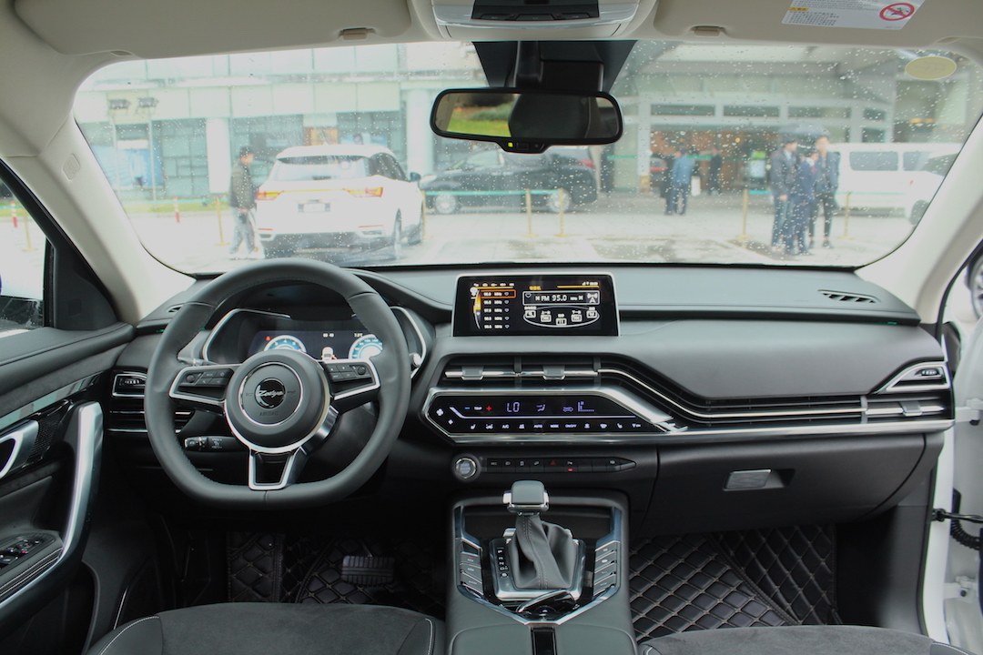 进到内饰,方向盘、悬浮式大屏和变速箱部分的设计依旧有些眼熟,不过中控台整体的流线设计让人感到焕然一新。据介绍,这样的线条设计灵感来源于著名的钱塘江大潮,从中国元素中获取灵感,也是国产品牌设计语言与众不同的地方。