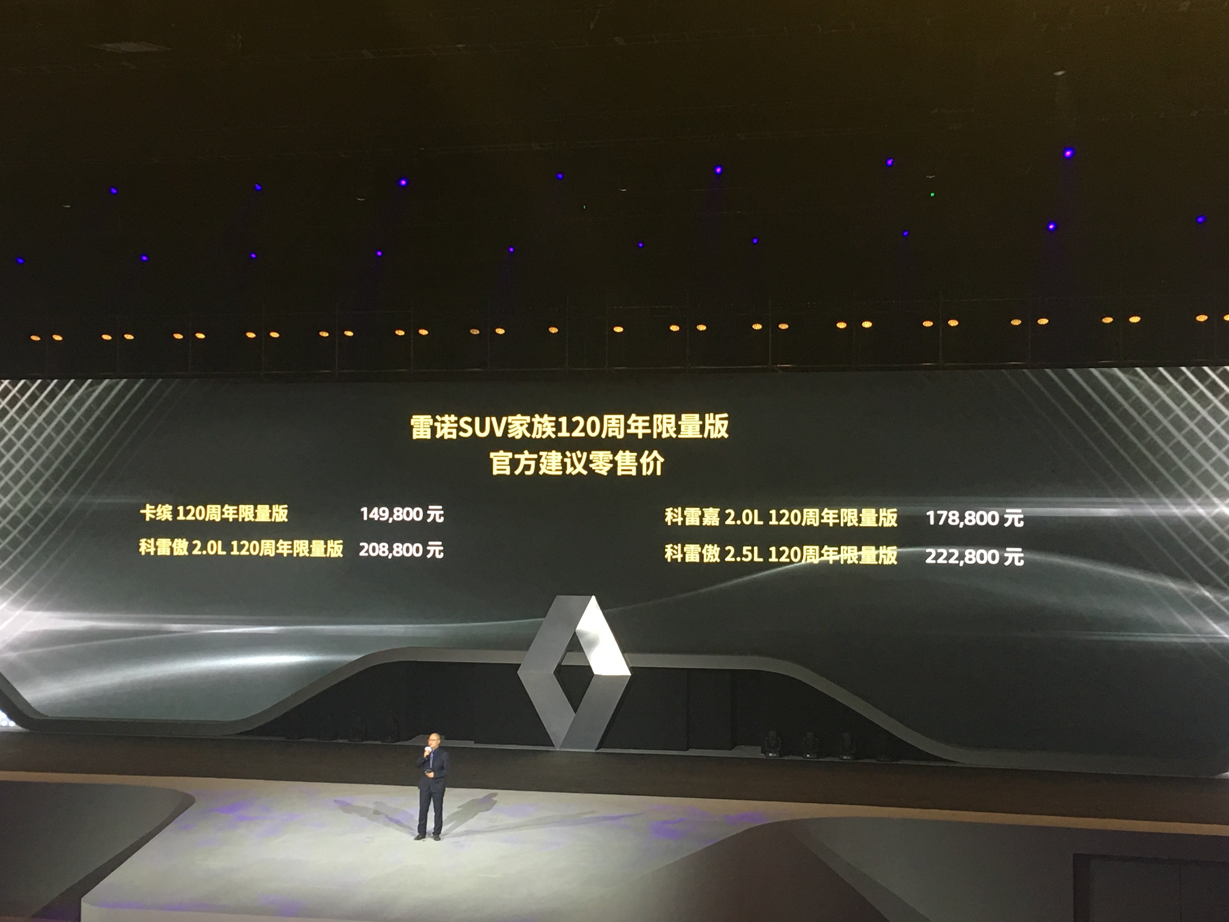 以品牌之夜为契机,东风雷诺正式发布了“雷诺SUV家族120周年限量版”车型,共计四款产品,官方指导价14.98万元-22.28万元。限量版车型在全新一代科雷傲、科雷嘉和卡缤成功的基础上打造,以燃情设计、燃心科技及燃享价值为中国消费者打造尊崇专享的出行体验,进一步提升东风雷诺产品线的实力和魅力。