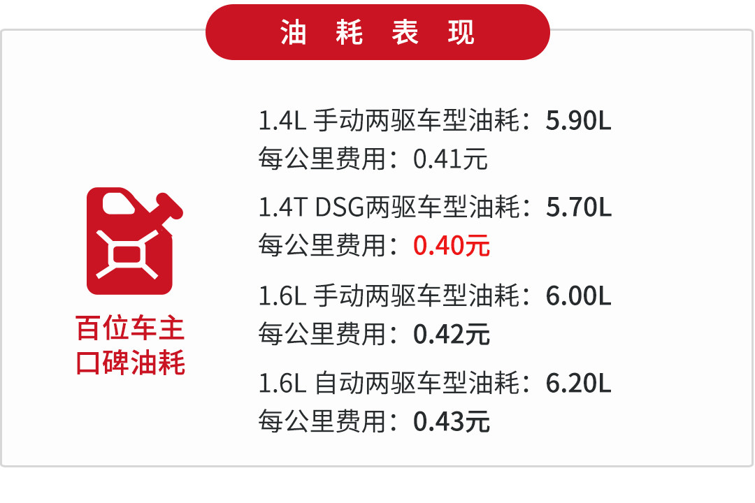 1.4T的引擎则采用了缸内直喷技术并搭载7挡的DSG变速器,凭借缸内直喷技术以及涡轮增压技术和双离合技术的应用,在精确控制燃油的喷射量和加大进气量使燃油充分燃烧的同时减少动力在输出上的损失,这样做充分的减少了废气的排放和降低燃油的消耗率,燃油经济性更好,不足点在于这款车必须得用95号汽油。