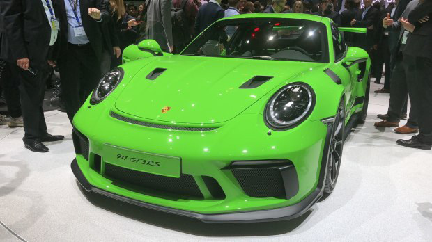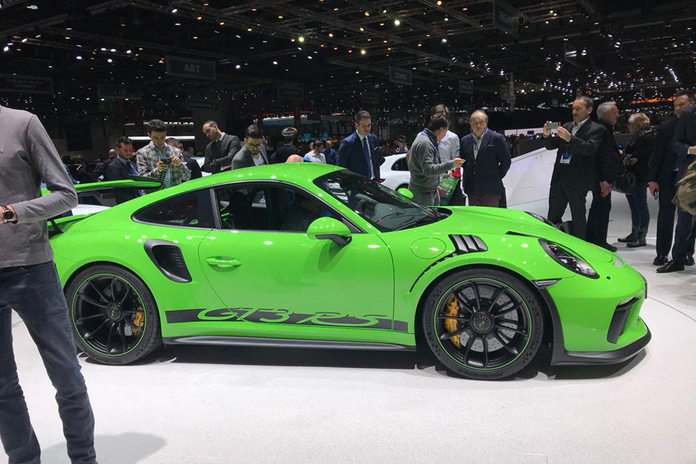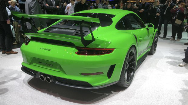 这次展出的保时捷911 GT3 RS通体采用了绿色车身,似乎暗示了古训,要想生活过得去,车身总要带点绿。激进的前保险杠造型,前备箱出风口,硕大的尾翼和后轮出风口,让911 GT3 RS区别于普通的911。