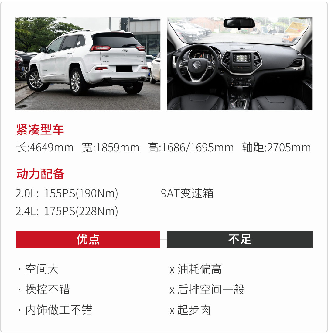 居然谈到美系SUV,那Jeep就肯定不能少了,因为Jeep可以说是美系SUV中最有情怀的了,多少人儿时的梦想就是拥有一辆Jeep啊!自由光自从实现国产后,一直保持着比较不错的关注度,自由光从外到内也可以肯定这是一辆都市SUV,可是仍然保留着一定的越野性能,在许多简单的越野测试中,也有不错的表现。