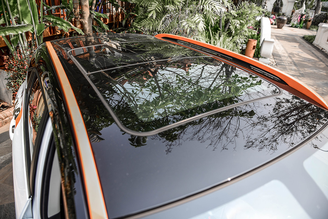 电镀橙色的车标设计相当“点睛”,相比普通版的平淡增添了一些亮色。