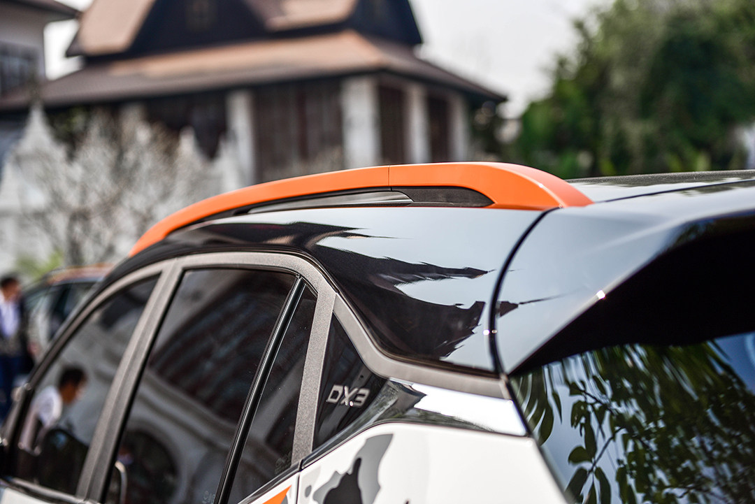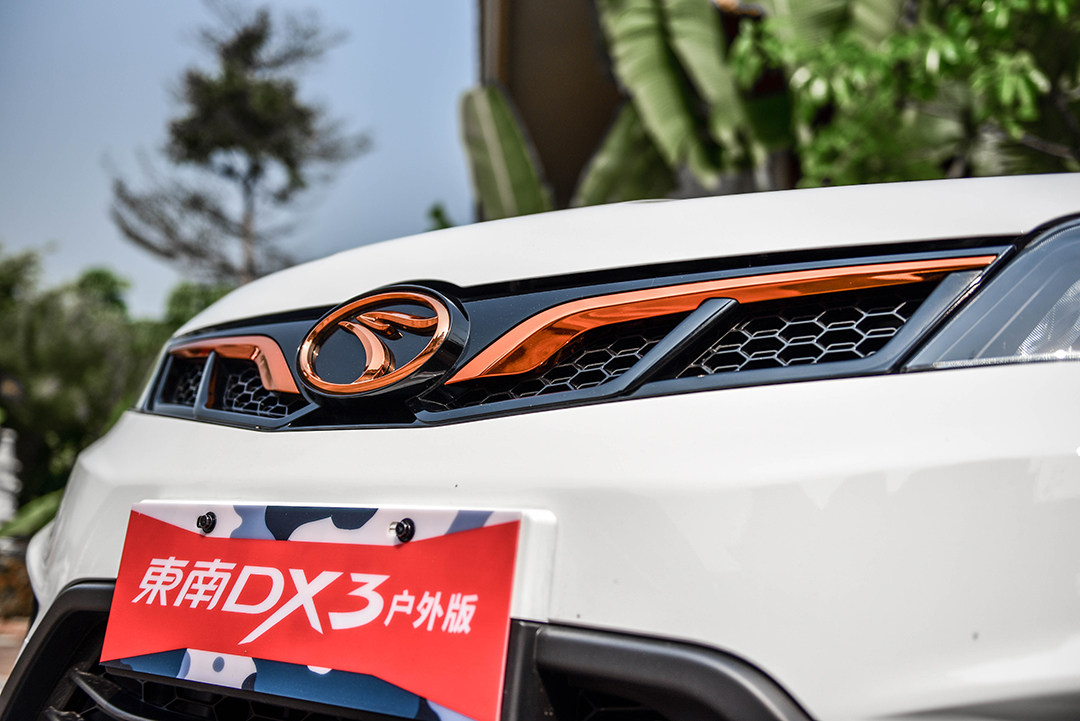 户外版就是在东南DX3的基础上,进行了外观和内饰上的修饰,同时提供户外运动升级包,就变成了户外版的车型。外观方面,改动的地方包括将进气格栅和车尾的电镀变成橙色的电镀部件,车身侧面和后视镜增加迷彩的贴花,悬浮式车顶改成全黑色设计,同时车顶行李架也改成橙色以贴合整个主题。