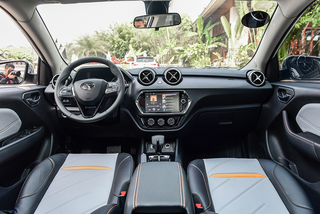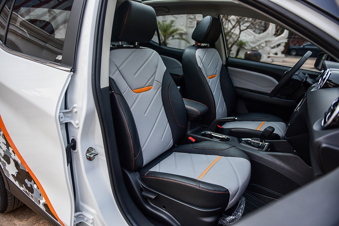 相对外观来说,内饰的改动也不算大。整个车厢设计均和普通版一样,就是座椅和门板的配色换成更清新的浅蓝加橙的配搭,同时增加较多的橙色缝线来增加年轻感。不过整体的配色感觉相当不错,比全黑或者黑红配搭之类的显得更活泼,而浅色也有助于提升整个乘坐空间的开阳感。