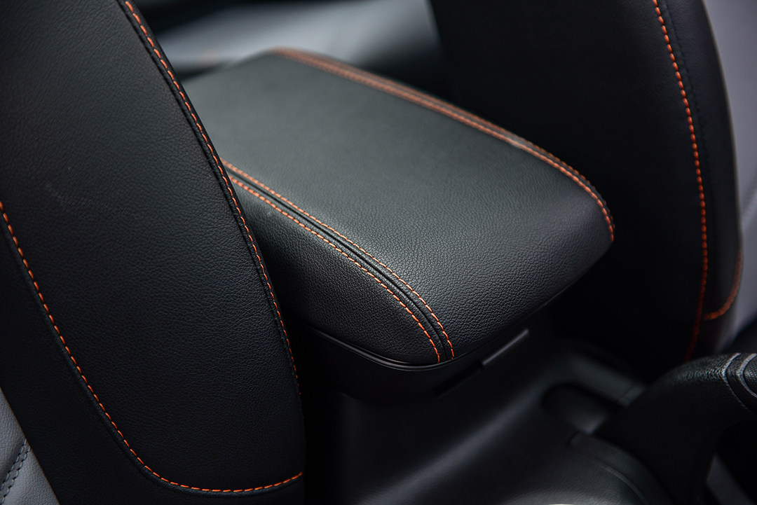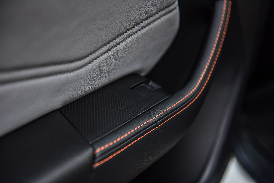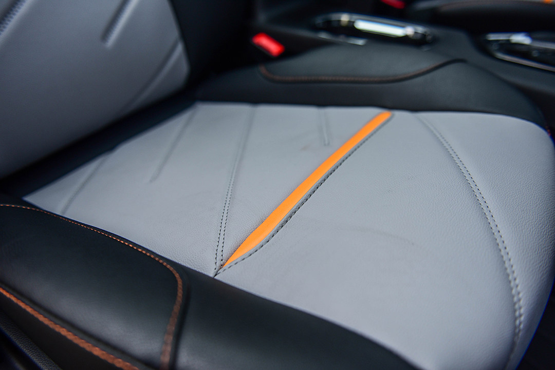 到处都有橙色的缝线来和车身外观的橙色作呼应。