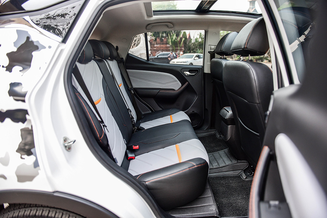 后座座椅也是相同的处理方式。值得一提的是,DX3的后座腿部空间本来就比较大(两拳),加上浅色的座椅和全景天窗,感觉后座的空间更大了。