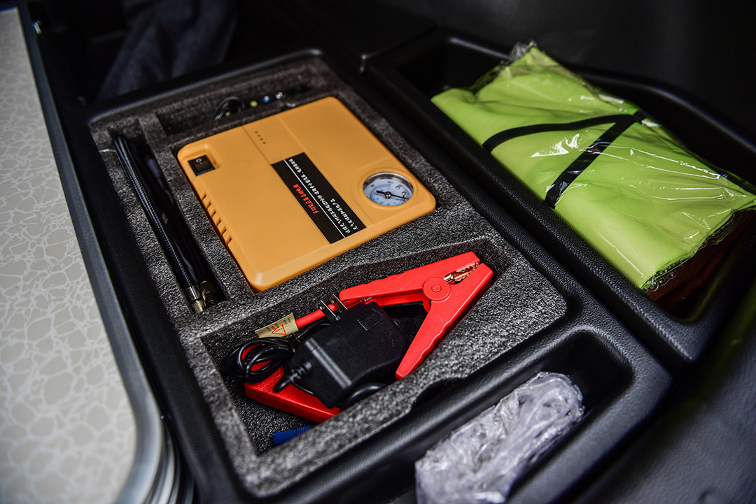 除了上述的一些改变,厂家为了强调”户外”的主题,也增加了一些“颇有玩味”的户外运动升级包可供选装。包括折叠桌椅(左)和救援神器(右,包括过江龙、带应急灯和电源功能的打气泵)。