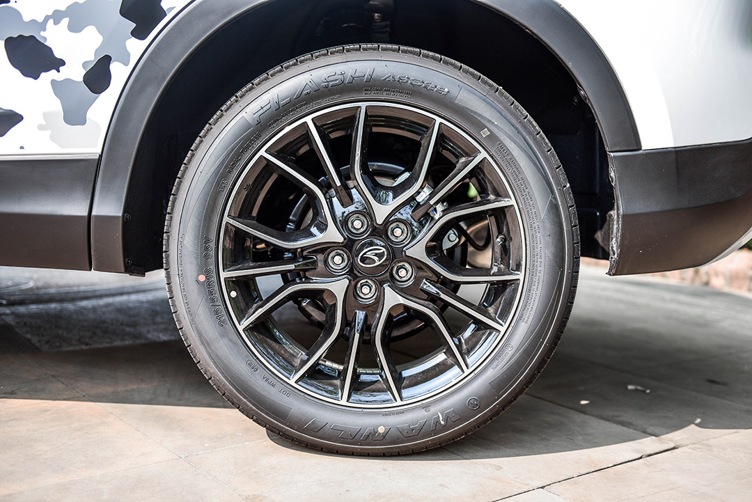 户外版车型均配18寸铝合金轮圈和215/55R18的轮胎,强调操控感。轮圈款式和普通版1.5T版是一样的,而和SRG版的轮圈则有配色上的区别。