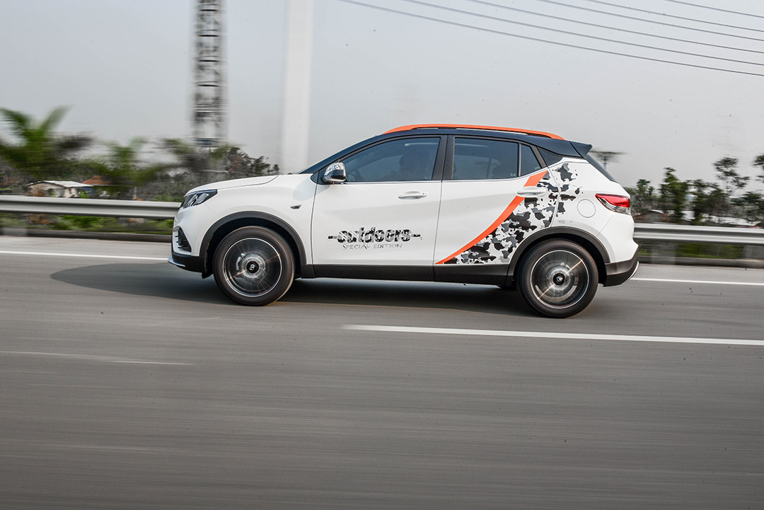 严格来说,这次的DX3户外版是在原有车型的中配和高配的区间中,增加了一个次高配的车型。机械结构和调校上并没有和其他版本的DX3区分开来,也没有特别增加一个四驱的车型。增加的外观和内饰上的改变(特别是内饰上的改变)和全景天窗配置的下放,价格比中配(没有全景天窗)的贵2000元,比顶配便宜4000元,的确对于购车的年轻人有更强的吸引力。