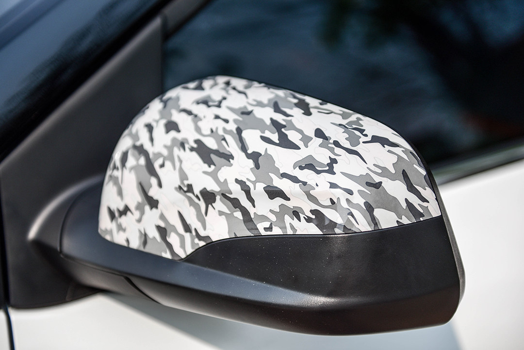 后视镜外壳也拥有迷彩的配色,细节感较强。