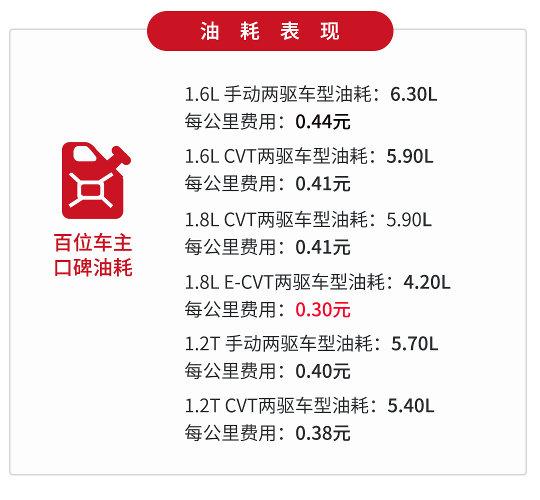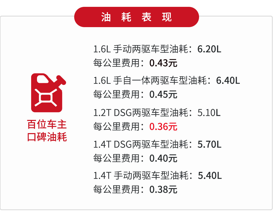 而搭载手自一体变速箱的是2款18T车型,整车备重都已经达到1260KG,较重的体重即使搭载拥有较好传动效率的1.3T+6AT变速器也没将其油耗拉下去,不过相对于其他同等级车型来说,在油耗上已经算是比较优越的了。