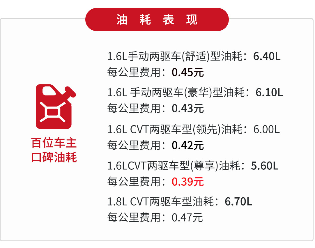 轩逸作为国内畅销的紧凑车型之一不是没有理由的,优雅的外观,简洁的内饰和不错的油耗让它收获大批粉丝的芳心。其中舒适版的1.6L自然吸气发动机采用多点喷射技术,提前和空气进行混合后燃烧,再配合5挡具有高传动效率的手动变速箱,在传输路径上减少动力的损失,实现高效利用,节省燃油。