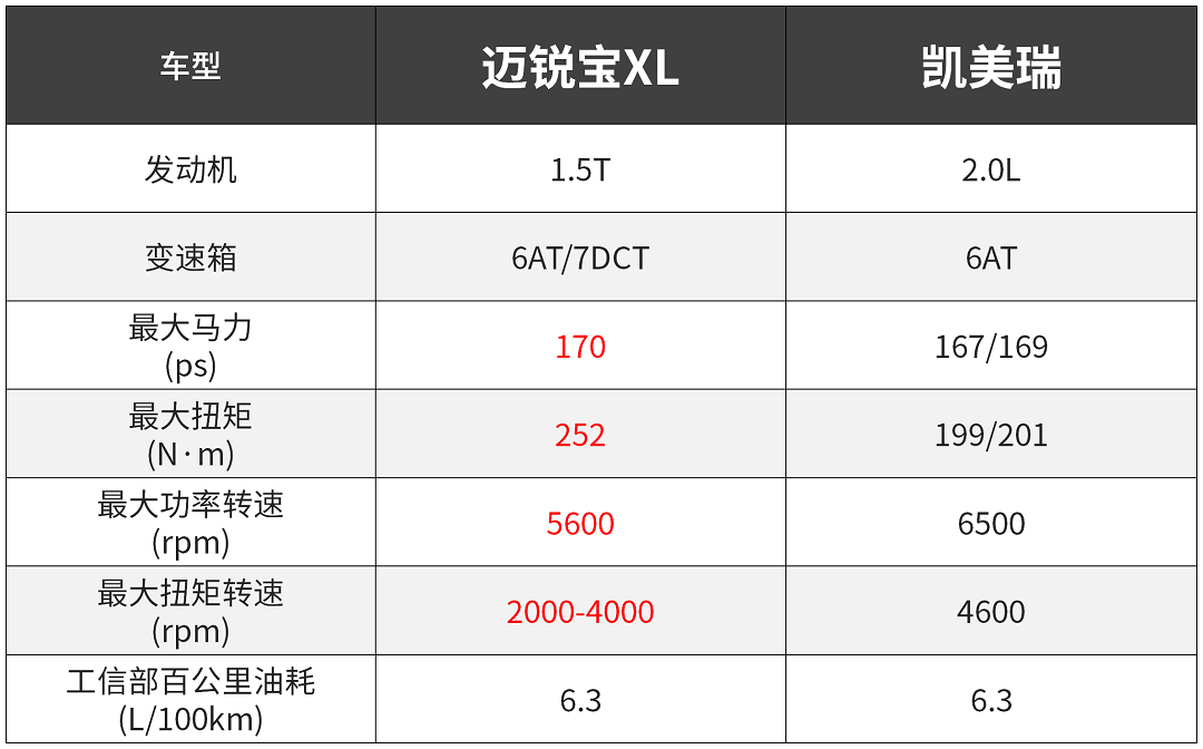 对比20万不到的迈锐宝XL1.5T和凯美瑞,两款车从马力数值和最大扭矩来看,马力差不多,由于涡轮增压的优势迈锐宝XL扭矩表现更强,达到最大功率和最大扭矩的转速更低,在油耗表现上两款车的表现相差不多。