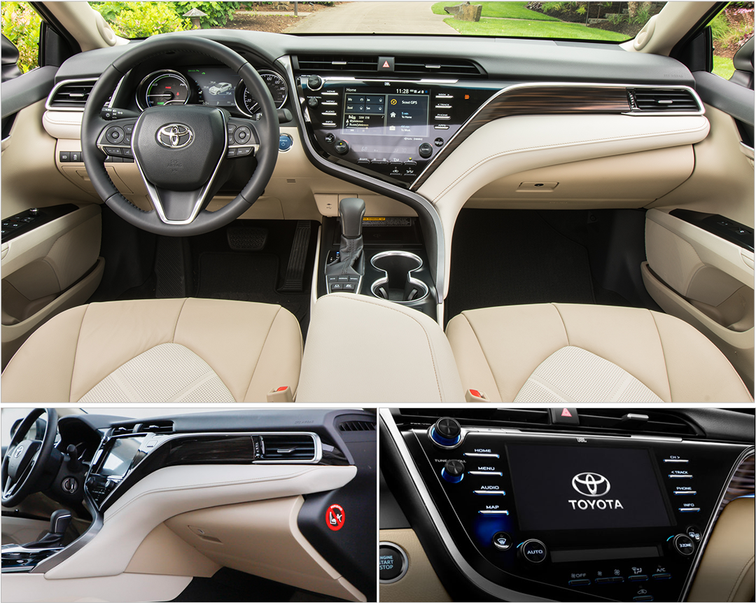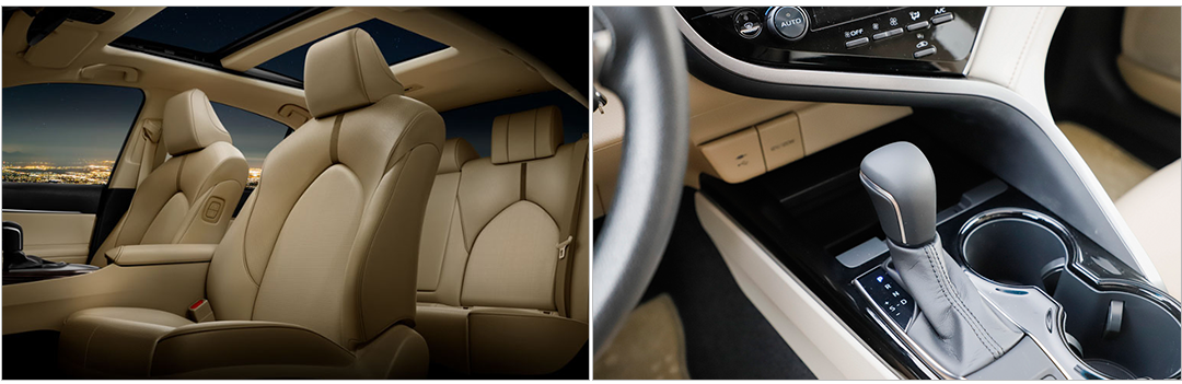 相比之下凯美瑞的中控台采用了非对称式的设计,与激进的外观设计不谋而合,十分大胆。中控面板同样是用上大面积软质材料裹,层次感厚重一点,中控屏采用比较稳扎的传统形式,并与周围的饰板融为一体,给复杂的内饰设计增加了一丝整体感。