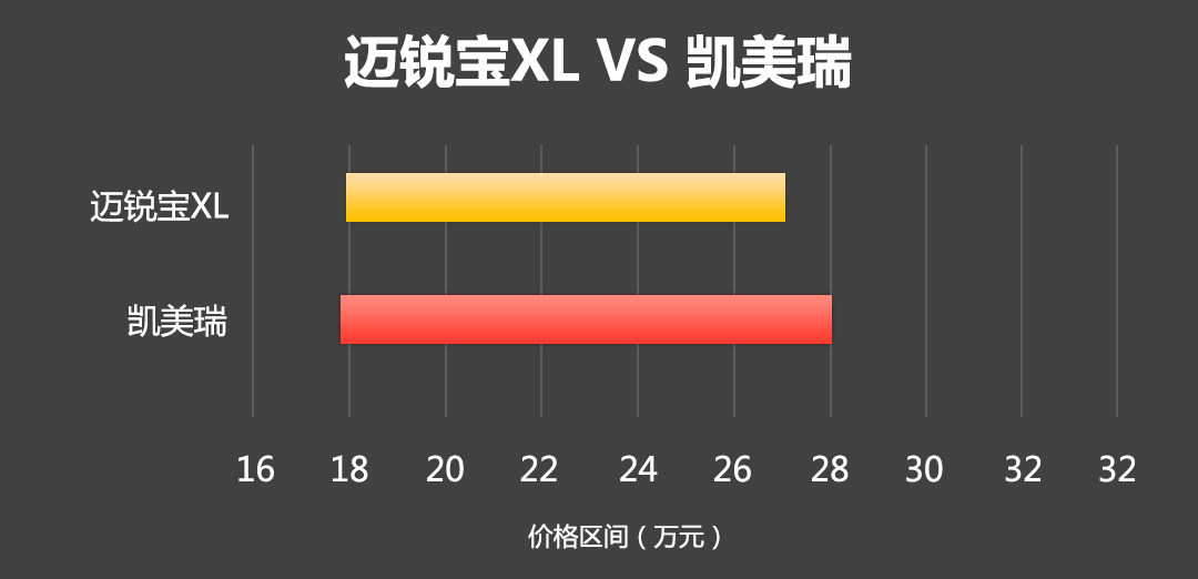 先看迈锐宝XL指导价,17.99—26.99万,取整就是18到27万,而凯美瑞指导价17.98—27.98,两车最高价相差一万,所以单单看指导价,两款车相差无几,然而价格其实是迈锐宝XL的杀手锏之一。