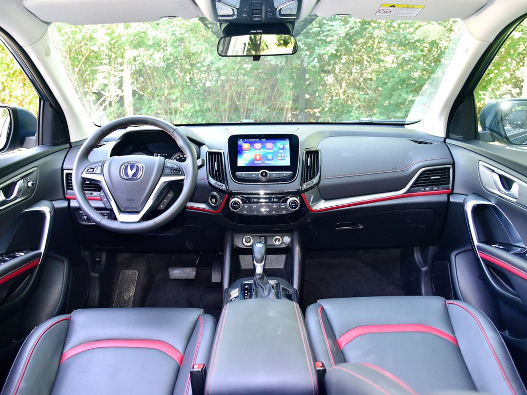 CS55的内饰也是以年轻为主,用红色的线条和银色的饰条勾勒出层次感,红色缝线再为内饰增添一丝年轻时尚的气息。内饰其中一个亮点是搭配了全景天窗,并且采光面积和打开的面积都不小,为车内的通透程度加分。